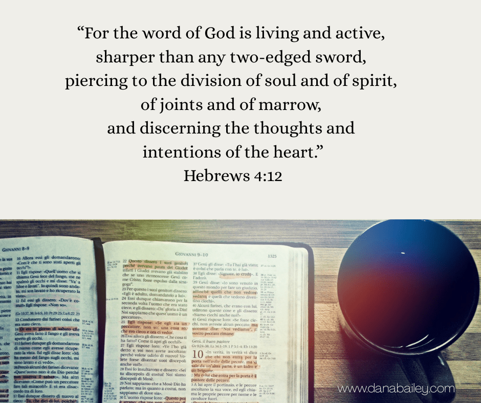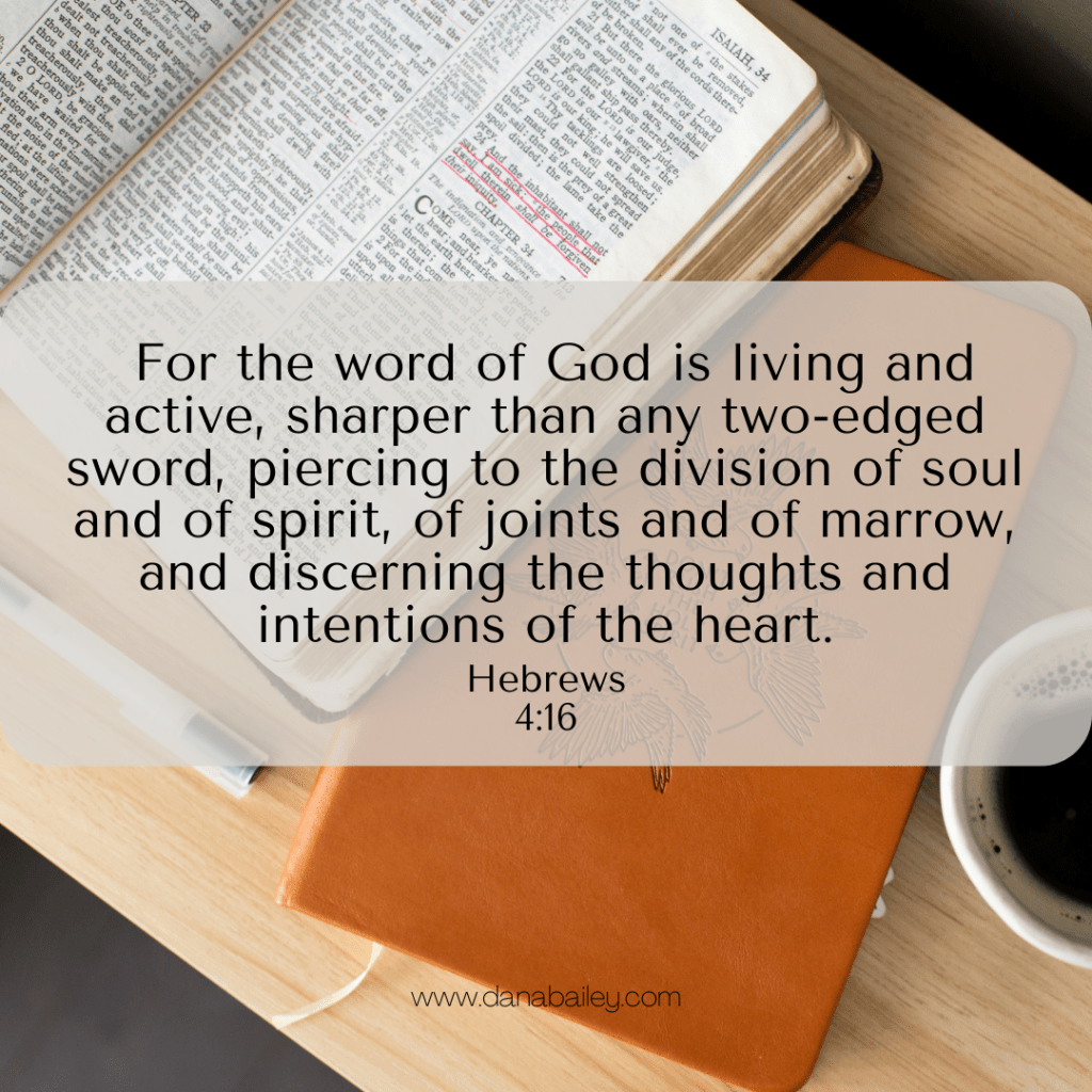 For the word of God is alive and powerful. It is sharper than the sharpest two-edged sword, cutting between soul and spirit, between joint and marrow. It exposes our innermost thoughts and desires. Hebrews 4:12 NLT